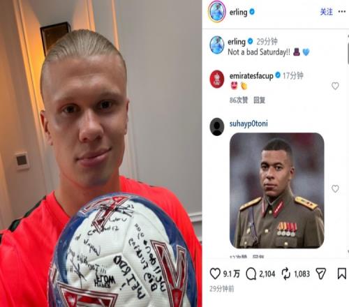 哈兰德也在赛后通过社媒晒出了队友们签名的足球,并调侃道:“周六过得还不错
