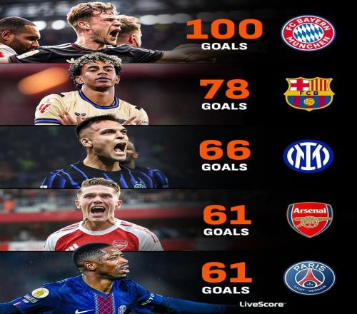 体育播报4月5日宣 拜仁在本轮德甲让二追三,3-2逆转绝杀弗赖堡,本赛季28轮德甲已狂轰100球,同期领跑五大联赛。